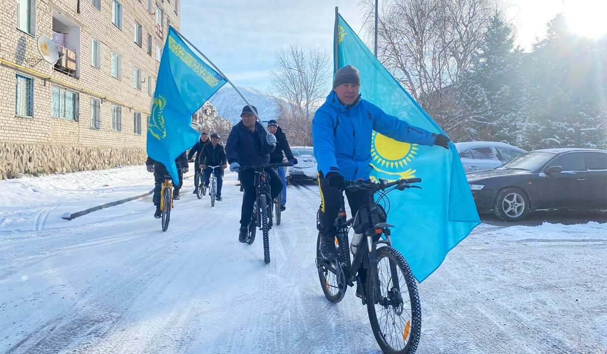 » » Жетісу облысында бір мезгілде Мемлекеттік Ту шеруімен велошабандоздар сайлауға барды