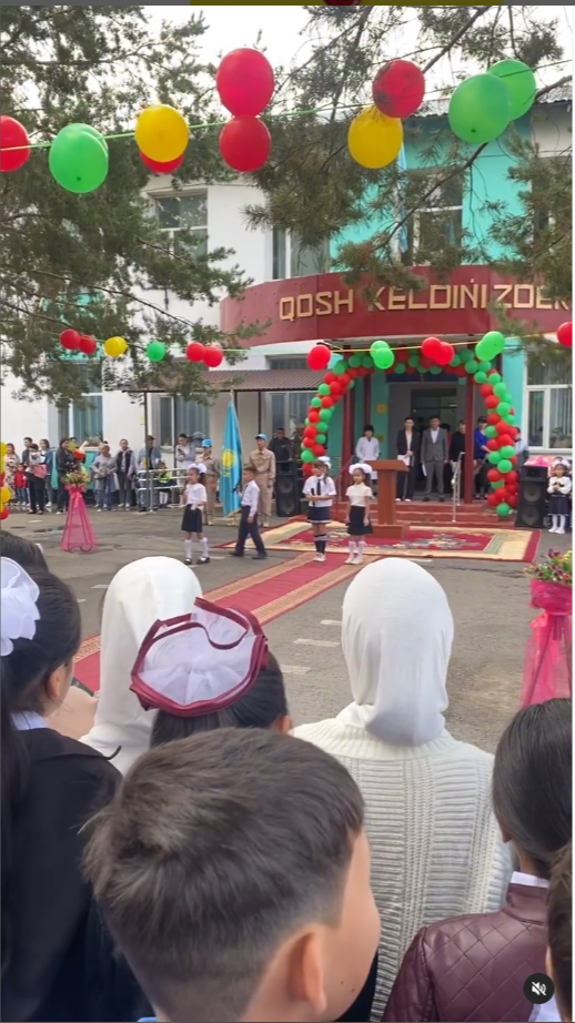 1 сағатқа созылған салтанатты жиында ән айтылып, 11-сынып оқушылары мектеп қабырғасын аттағалы отырған бүлдіршіндермен бірге алғашқы қоңырау соқты.