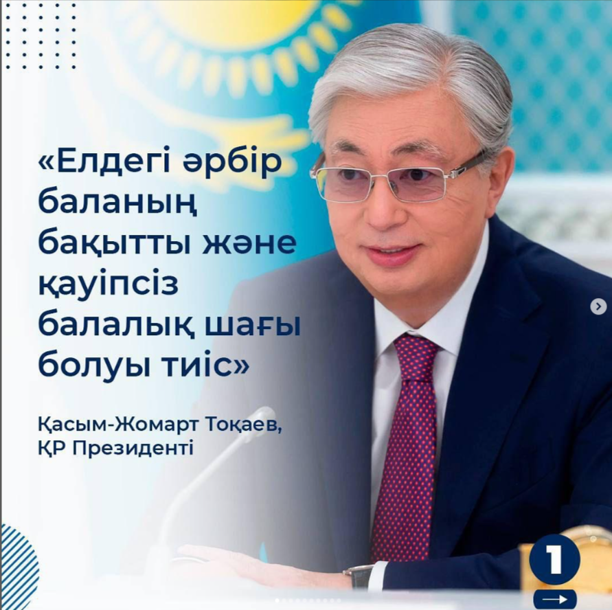 24 январь 2025 0 1 2 3 4 5 “Елдегі әрбір баланың бақытты әрі Қауіпсіз балалық шағы болуы тиіс” Қазақстан Республикасының Президенті Қасым-Жомарт Тоқаев