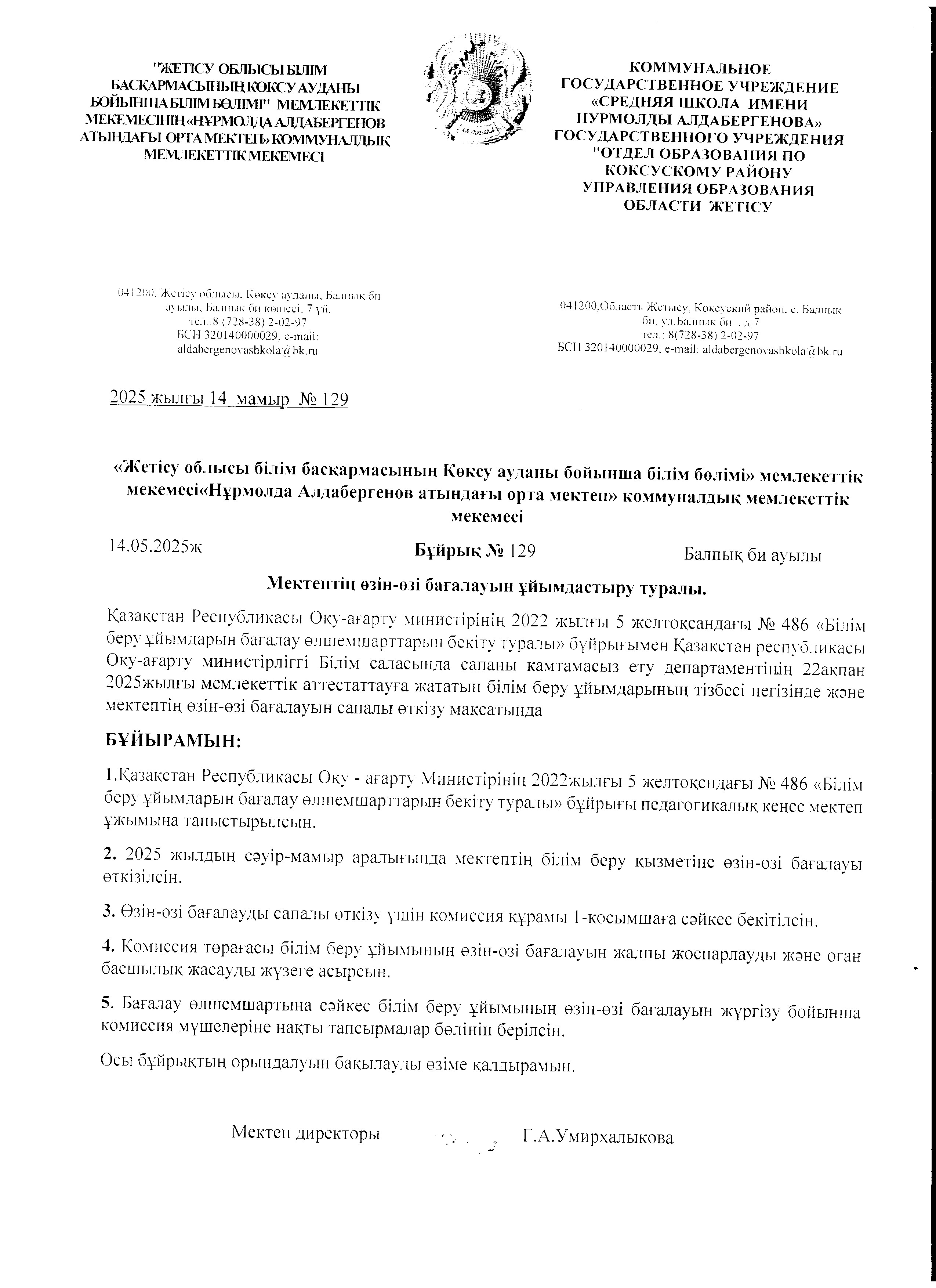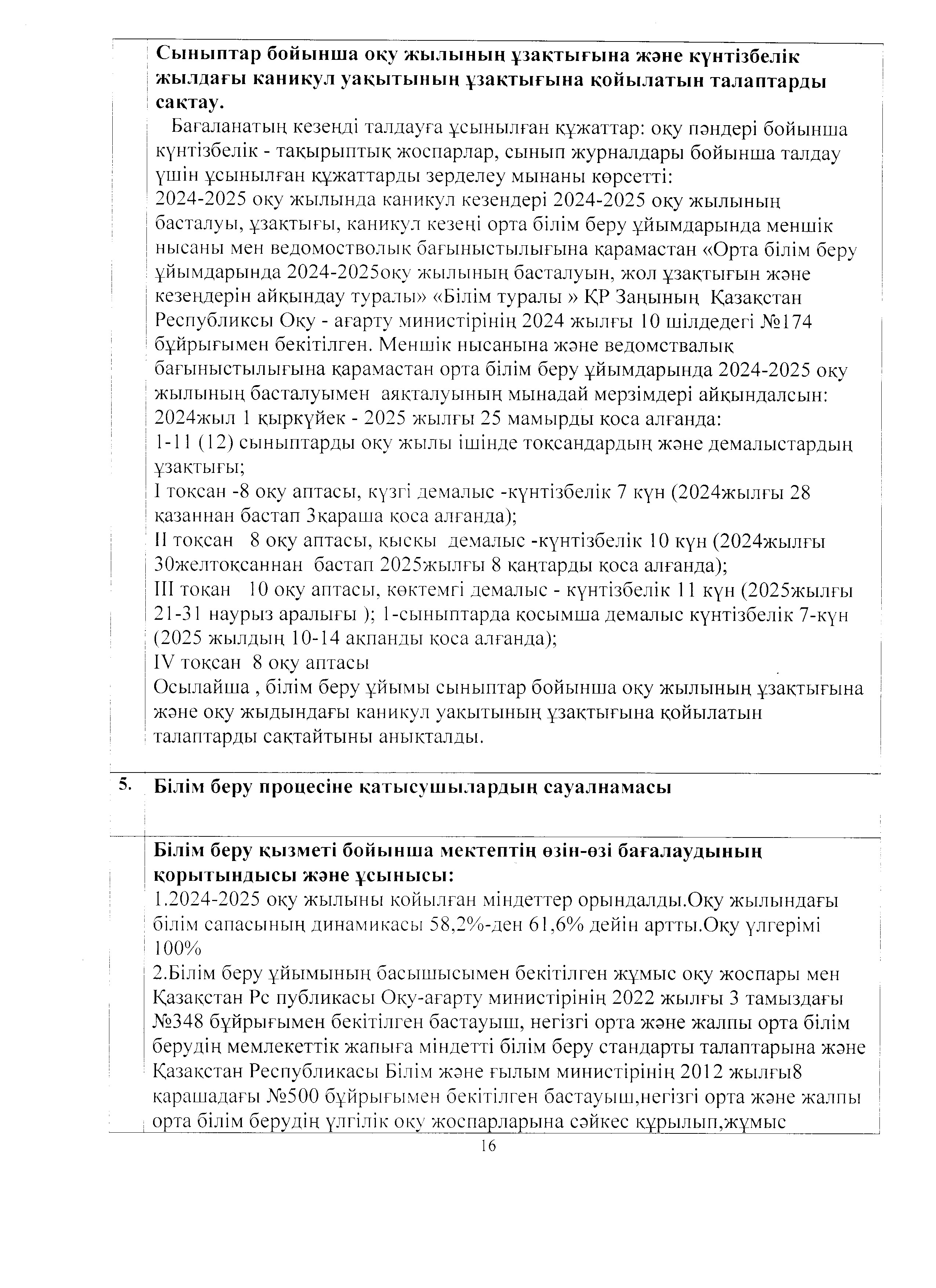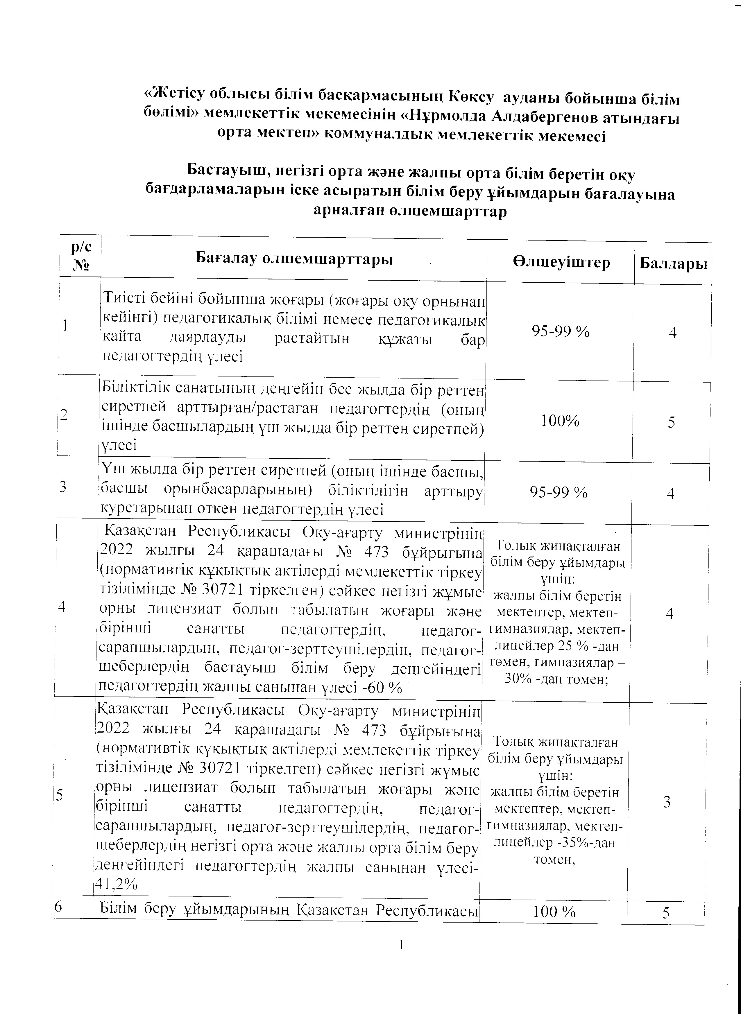 Мектептің өзін-өзі бағалау қорытындысы » Жетісу облысы Көксу ауданы Н.Алдабергенов атындағы орта мектеп