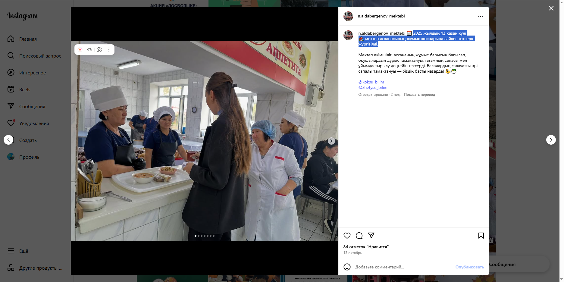 Мектеп әкімшілігі асхананың жұмыс барысын бақылап, оқушылардың дұрыс тамақтануы, тағамның сапасы мен ұйымдастырылу деңгейін тексерді. Балалардың салауатты әрі сапалы тамақтануы — біздің басты назарда!