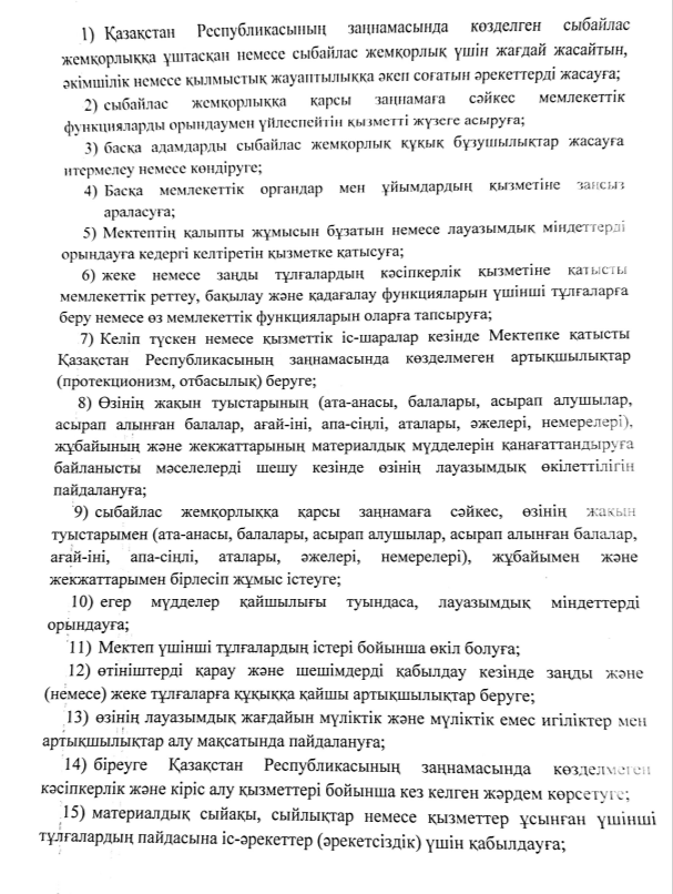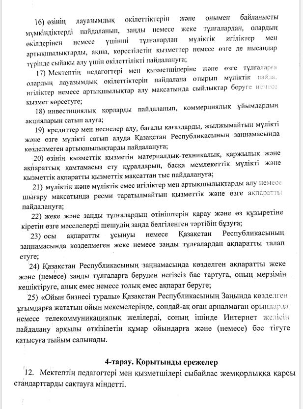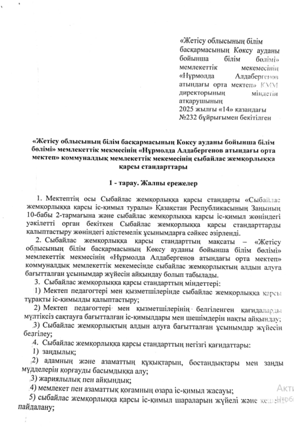 Сыбайлас жемқорлыққа қарсы стандартты бекіту туралы » Жетісу облысы Көксу ауданы Н.Алдабергенов атындағы орта мектеп