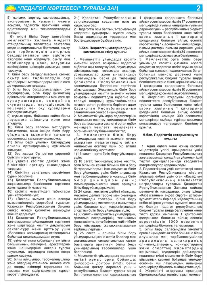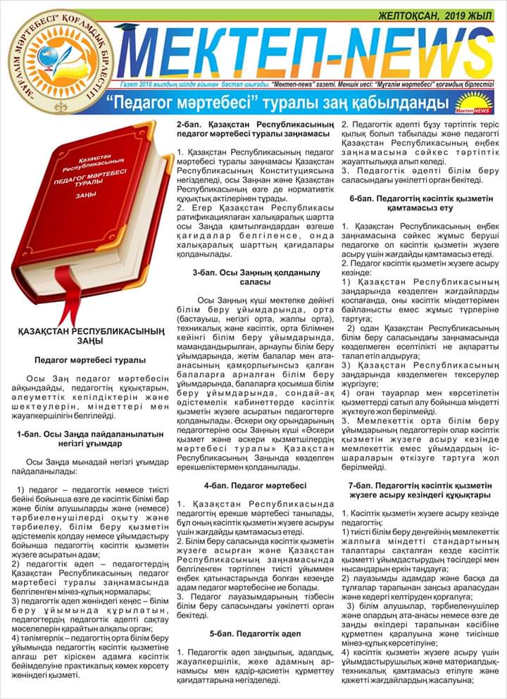 закон о статусе педагога » Жетісу облысы Көксу ауданы Н.Алдабергенов атындағы орта мектеп