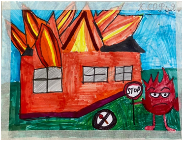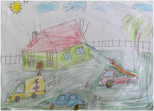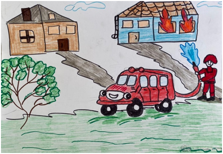 Мақсаты: балалардың бойына азаматтық қорғаныстың маңыздылығына назарын аудару және апаттық, авариялық жағдайда өздерін  қорғау үшін дайындығын арттыру  болып табылады. Композициялық дағдыларды, кеңістікті бейнелеуді дамыту.