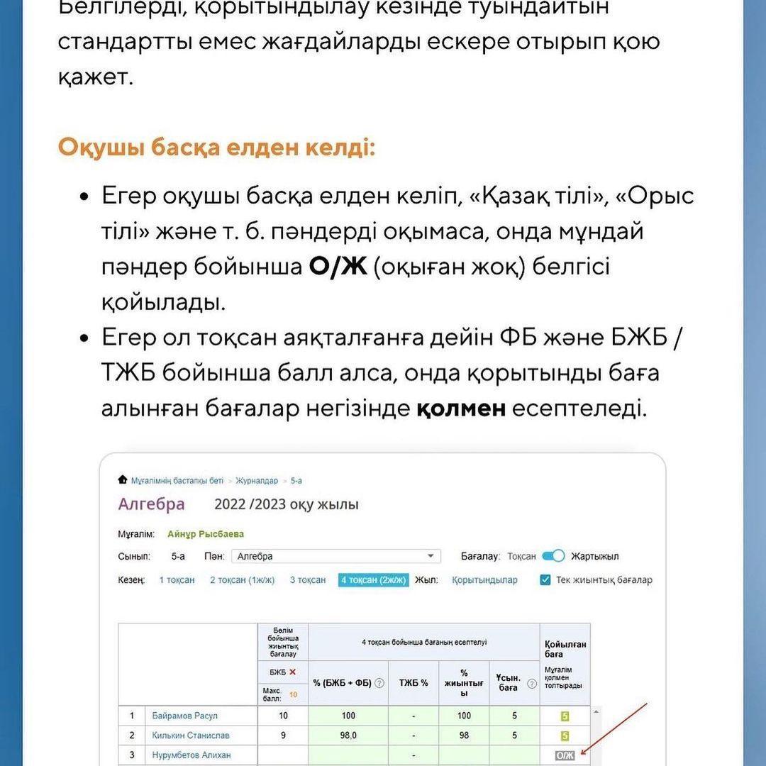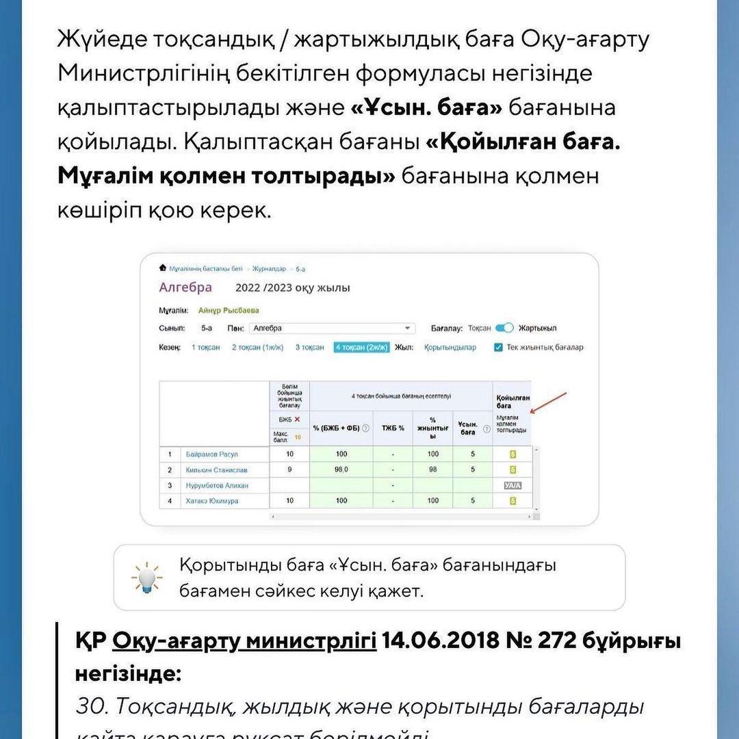 Оқу жылының аяқталуына дайындық: біздің мұғалімдерге арналған нұсқаулығымыз! 🎓📚Құрметті ұстаздар!Оқу жылының аяқталуына қарай сіздердің алдарыңызда маңызды мәселе - қорытынды шығару және оқушылардың үлгерімін бағалау тұрғанын түсінеміз. Біз kundelik.kz электрондық журналында оқу жылының қорытындысын шығару кезінде таптырмас көмекшіңіз болатын нұсқаулық дайындадық. Сұрақтарға толық жауап аласыздар деген үміттенеміз. Егер сізде сұрақтар туындаса немесе қосымша ақпарат қажет болса,мектеп әкімшілігіне жолығыңыз.