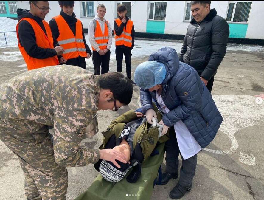 Мектеп оқушылары мен қызметкерлеріне төтенше жағдай кезінде алғашқы көмекті қалай көрсету керектігін қызметкерлерге практика жүзінде көрсетілді. Мектеп оқушылары тізім бойынша тексерілді.