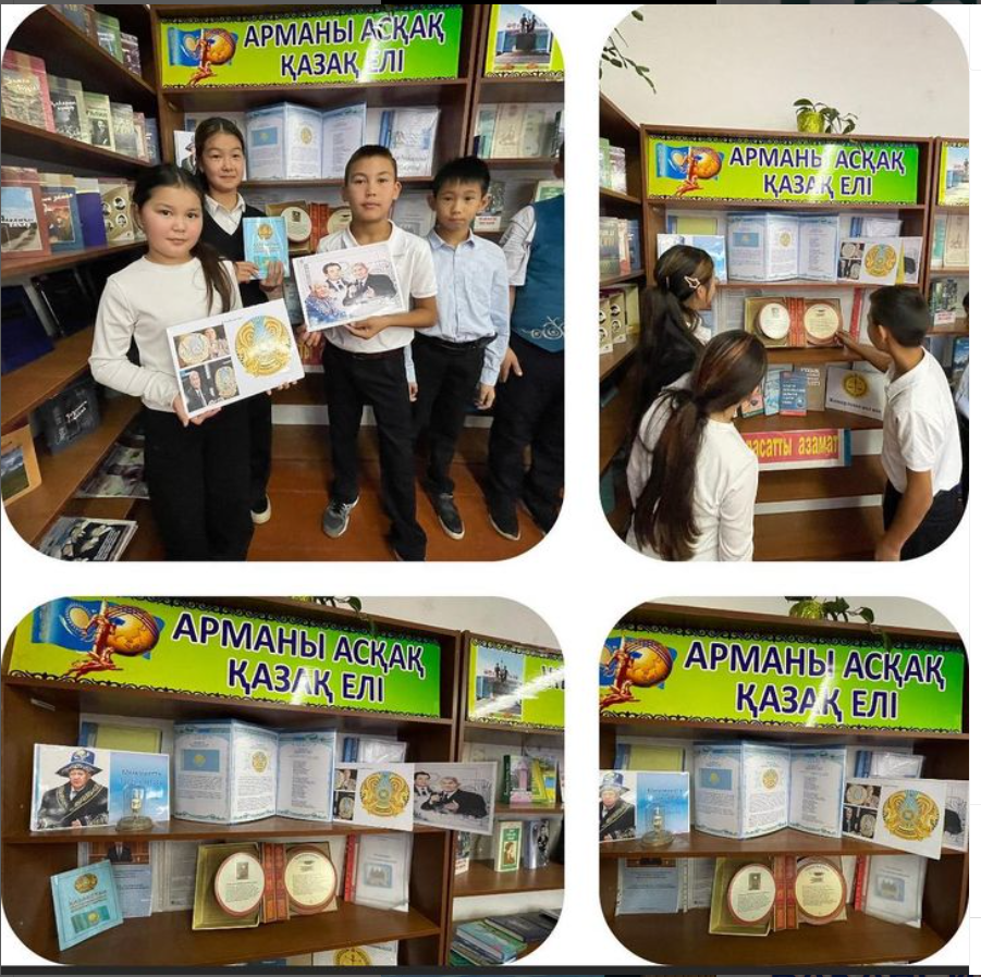 Жетісу облысы Көксу ауданы Н.Алдабергенов атындағы орта мектеп » Іс-шаралар » 1992 жылдың 4 маусымында «Қазақстан Республикасы мемлекеттік рәміздері туралы» Заңға қол қойылды. Бұл күн 2007 жылы Елбасы Жарлығымен 4 маусым — Мемлекеттік рәміздер күні ретінде бекітілді. Осыған орай Н.Алдабергенов атындағы орта мектеп кітапханасын