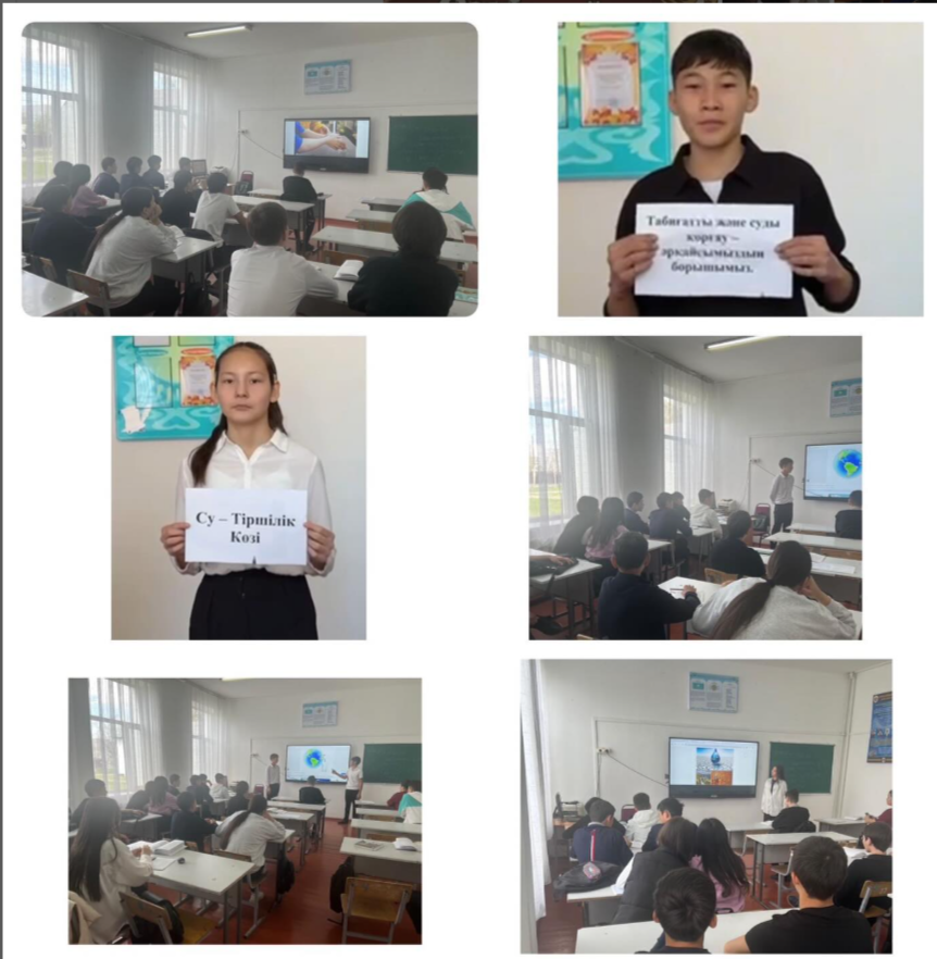 18.04.2024ж 9 “А” сыныбында “Суды үнемде - болашақты сақта!” атты тақырыбында сынып сағаты өтілді Мақсаты: Табиғатты сүюге, қоршаған ортаны қорғауға, экологиялық жауапкершілікке тәрбиелеу. Суды тиімді пайдалануға дағдыландыру.