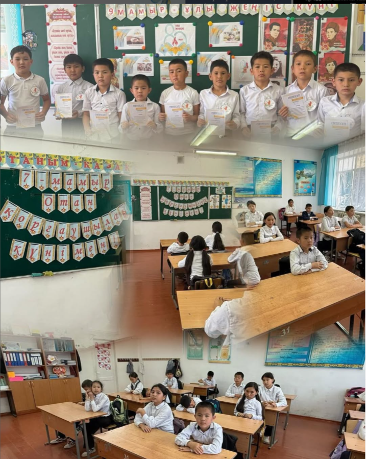 5 мамыр күні 4”Б” сыныбында Отан қорғаушылар күніне орай “Ерлер жердің қорғаны,елдің тұтқасы “ атты сынып сағаты өткізілді. Сынып сағатының мақсаты: Отанды сүюге,ерлік көрсеткен батырлардың бойындағы ержүректілік,отан сүйгіштік,ұлтжандылық қасиеттерін дәріптеу.Отанын, елін қорғай білуге тәрбиелеу.