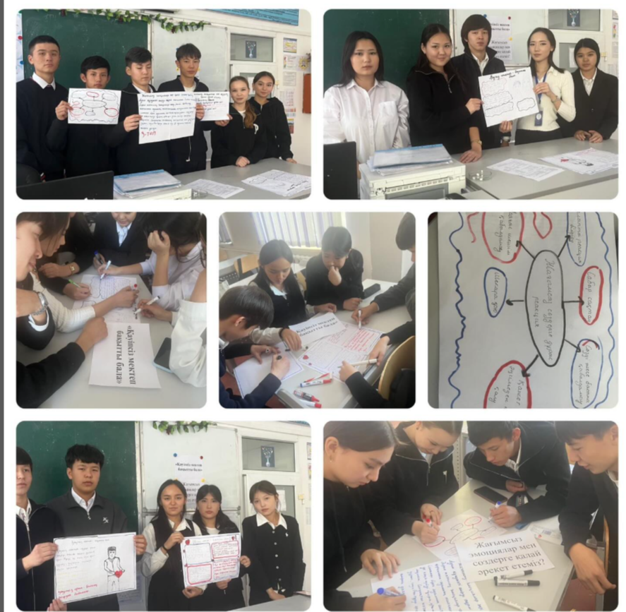 «Сен үшін қауіпсіз мектеп қандай?» жол қауіпсіздігі контекстіндегі жауапкершілік, денсаулық және құрмет құндылықтарын қысқаша түсіндірілді. Мектеп ережелерімен таныстырылды Жағдаяттық тапсырмаларға постер құрастырылды. Оқушылар өз ойларын ортаға салып, ойлау, талдау дағдыларын дамытылды. Сынып жетекшісі: Арахат Әсила
