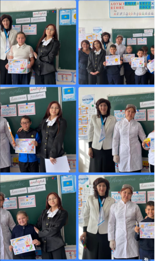 В рамках недели естественных наук было проведено мероприятие “Час занимательной науки” цель которого создать условия для развития познавательной активности младших школьников и расширения их кругозора в области естествознания через проведение игр, занимательных опытов и экспериментов с участием учащихся старшего звена. Учителя химии и биологии: Кушталова Ю.В. и Ихсанова Г.С.