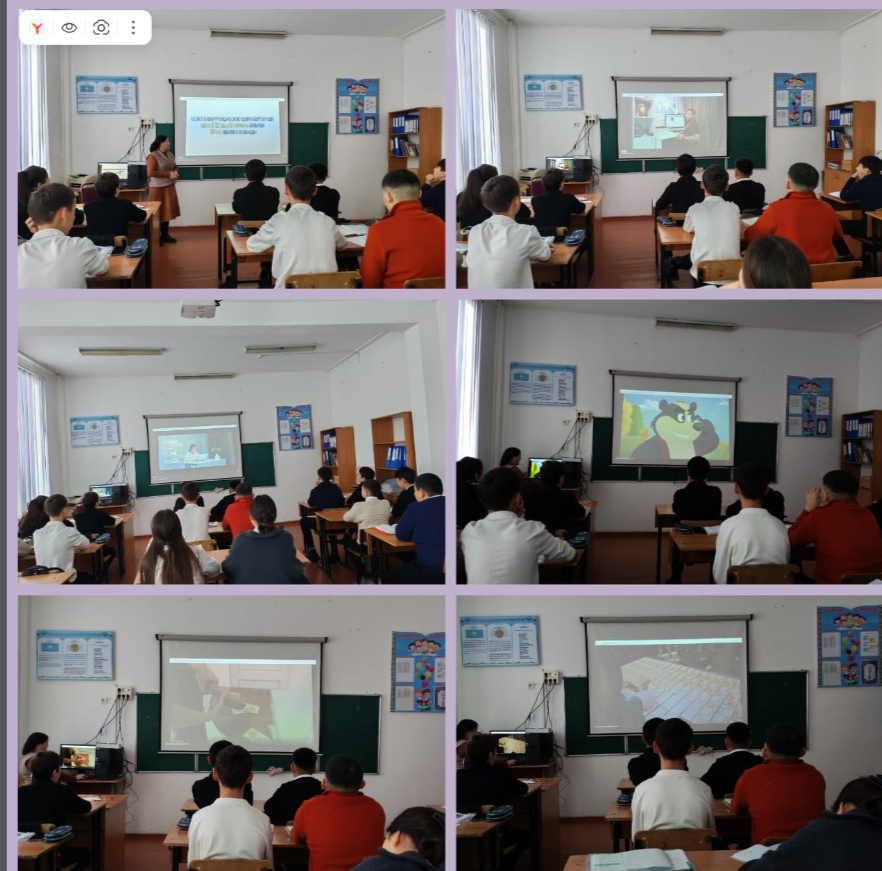 «Заң мен тәртіп» идеологиясын ілгерілету бойынша оқушылардың құқықтық сауаттылығын арттыру мақсатында Қаржылық мониторинг агенттігі мен Ішкі істер министрлігі ұсынған бейнематериалдар 8 «Ә» сынып оқушыларына көрсетіліп, түсіндіру жұмыстары жүргізілді.