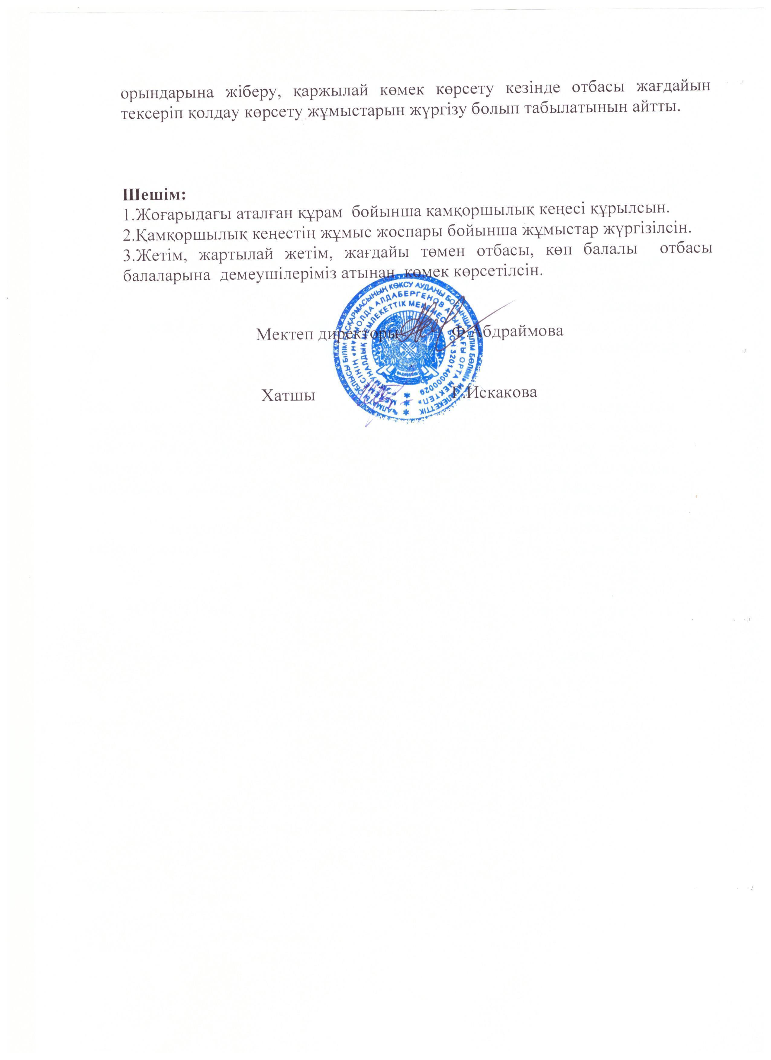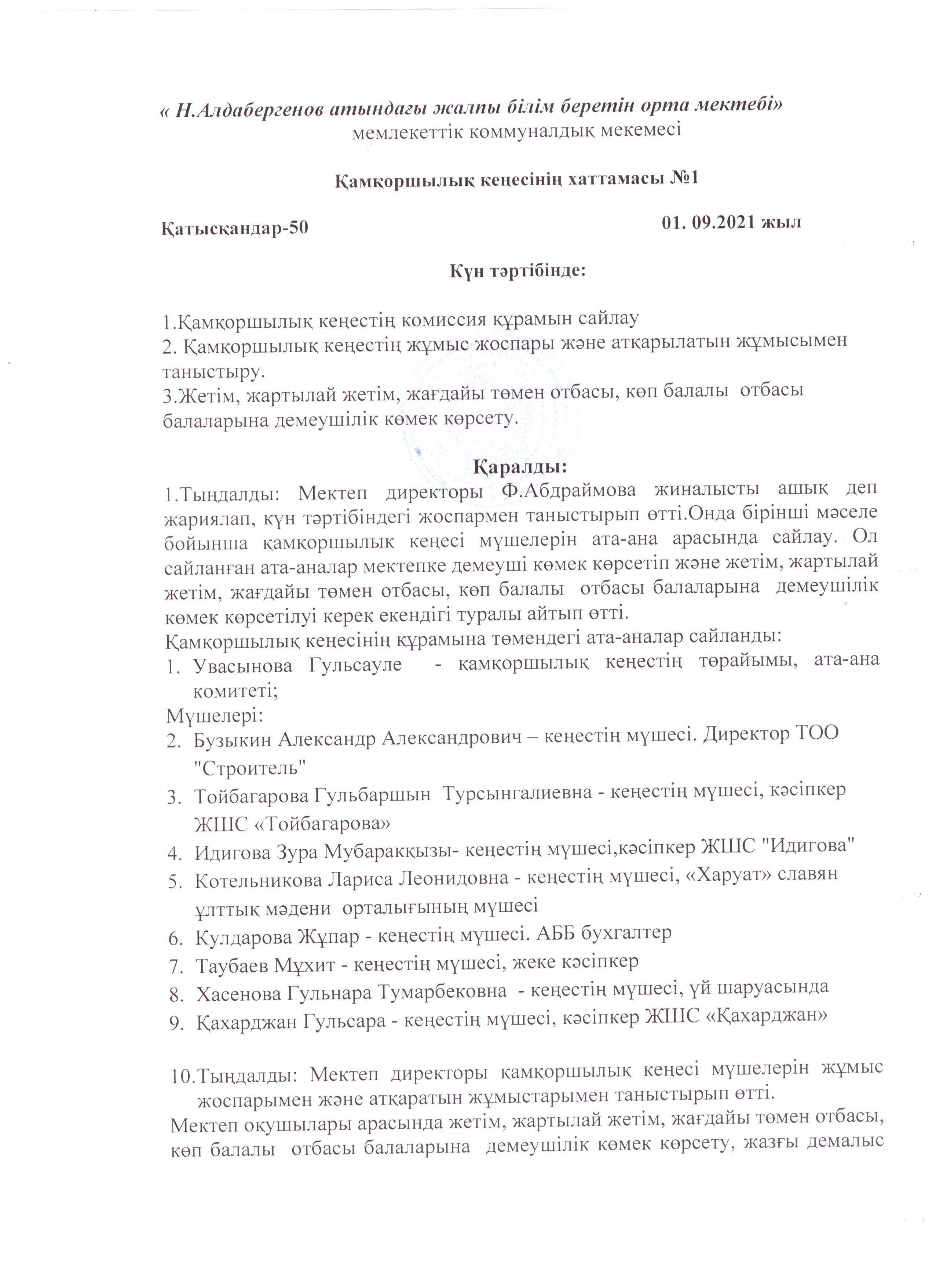 Попечительский совет 2021-2022 учебный год » Жетісу облысы Көксу ауданы Н.Алдабергенов атындағы орта мектеп