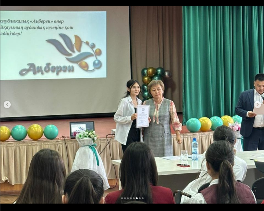 Аудандық шығармашыл оқушылар арасындағы «Ақберен»Республикалық өнер байқауына мектебіміздің оқушылары қатысып жүлделі орындар иеленді. Эссе жазу номинациясы бойынша 11 “А” сынып оқушысы Қабдұлла Аяулым екінші орын иеленді. Пән мұғалімі:Ахметова Айнур