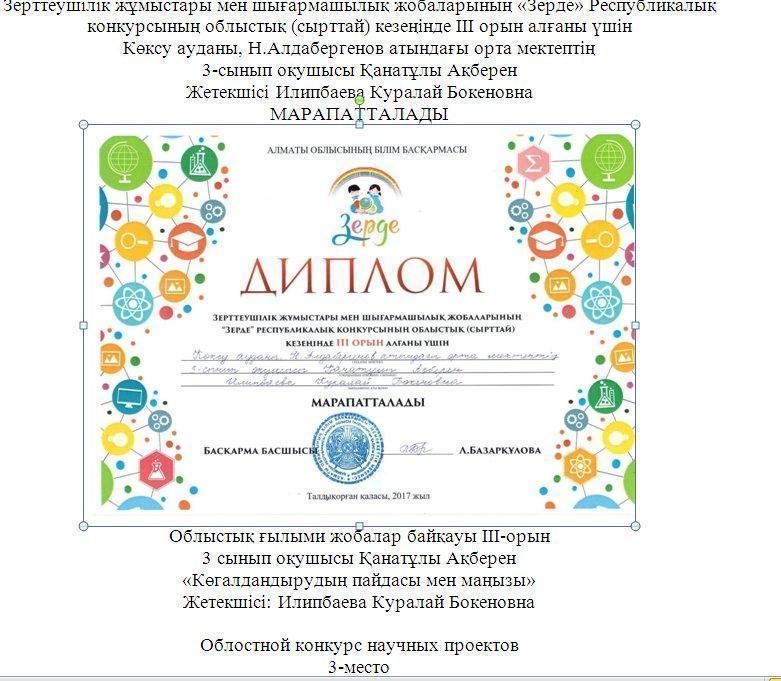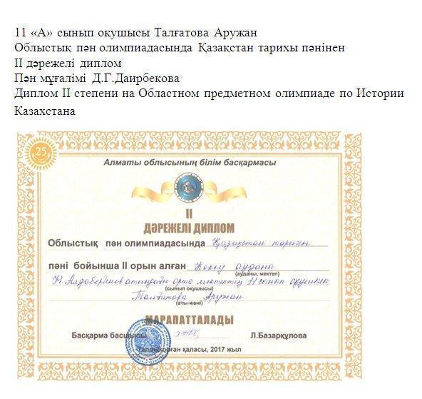 Достижения наших учеников » Жетісу облысы Көксу ауданы Н.Алдабергенов атындағы орта мектеп